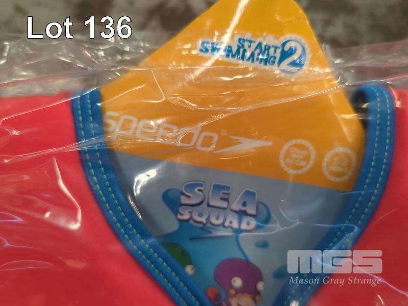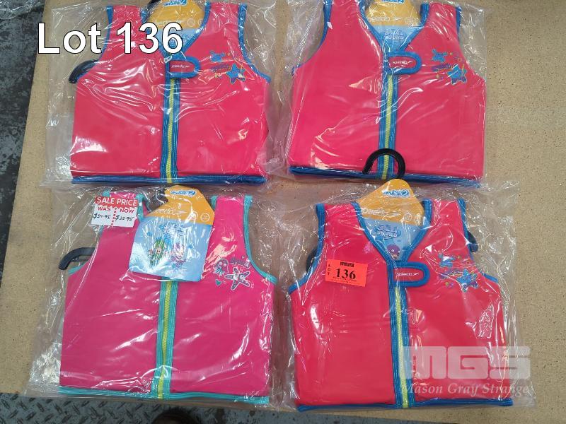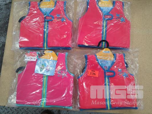 4 X SPEEDO "SEA SQUAD" CHILDREN'S FLOAT VESTS (51 CM CHEST / 1-2 YRS). ALL NEW.