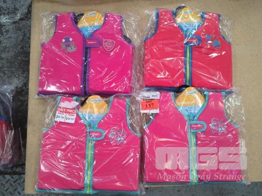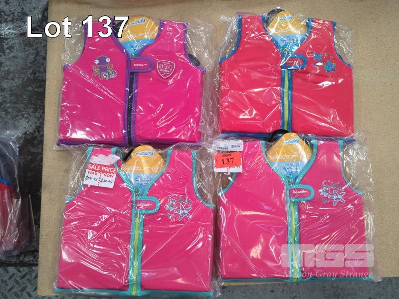 4 X SPEEDO "SEA SQUAD" CHILDREN'S FLOAT VESTS (56 CM CHEST / 2-4 YRS).