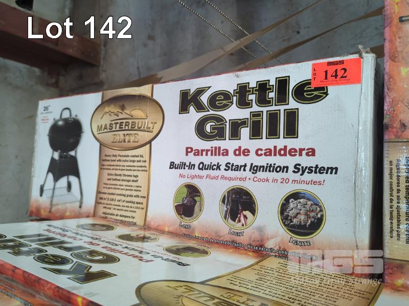 MASTERBUILT ELITE 26" KETTLE CHARCOAL GRILL * 66 CM DIAMETER GRILL ** BUILT-IN QUICK START IGNITION SYSTEM. EXTRA STURDY CHROME LEGS WITH STORAGE SHELF. MODEL 20041411 NEW IN BOX. ORP $399