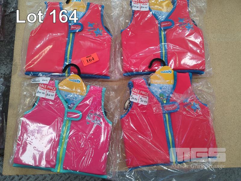 4 X SPEEDO "SEA SQUAD" CHILDREN'S FLOAT VESTS (51 CM CHEST / 1-2 YRS). ALL NEW.