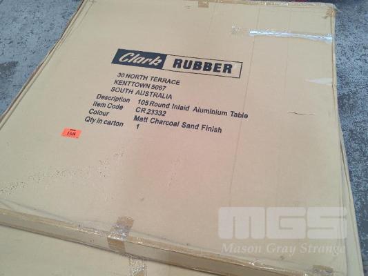CLARK RUBBER ROUND INLAID ALUMINIUM OUTDOOR TABLE.
