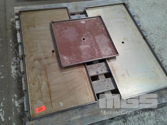 3 X CAST IRON BBQ HOT PLATES. 2 @ 950 X 450 MM. 1 @ 475 x 450 MM.