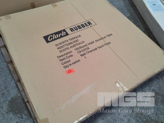 CLARK RUBBER ROUND INLAID ALUMINIUM OUTDOOR TABLE.