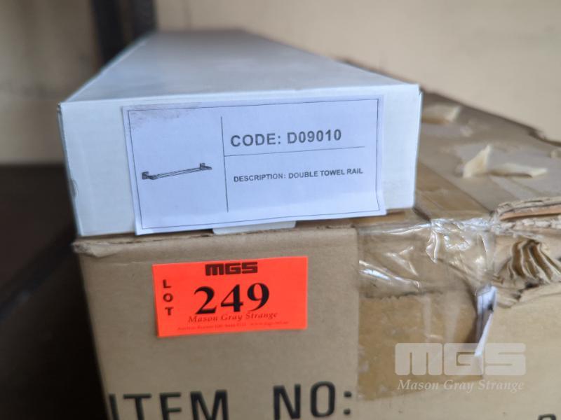 10 x WALL MOUNT DOUBLE TOWEL RAILS, CHROME, WITH FITTINGS. NEW IN BOX.