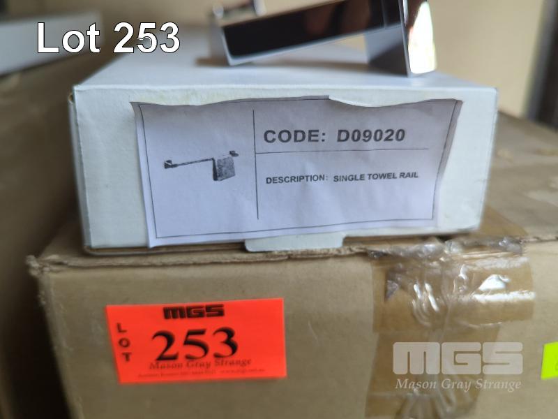 10 X WALL MOUNT SINGLE TOWEL RAILS, CHROME, WITH FITTINGS, NEW IN BOX.