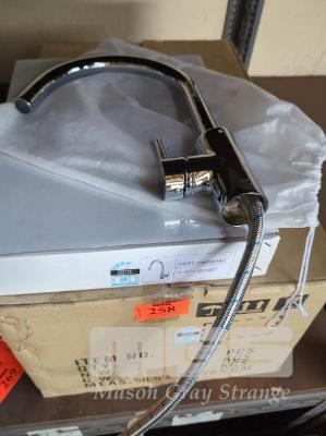 8 X CHROME MIXER TAPS WITH CURVED SPOUT. NEW IN BOX.