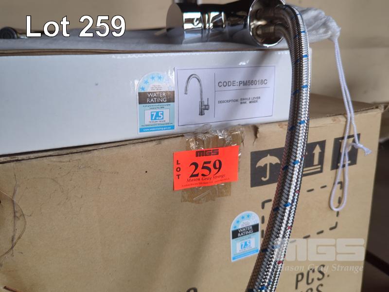 8 X CHROME MIXER TAPS WITH CURVED SPOUT.