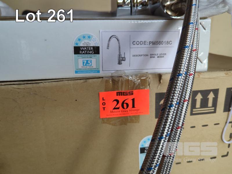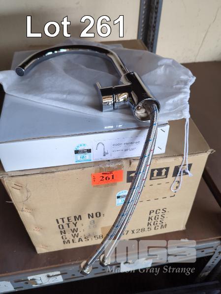 8 X CHROME MIXER TAPS WITH CURVED SPOUT.