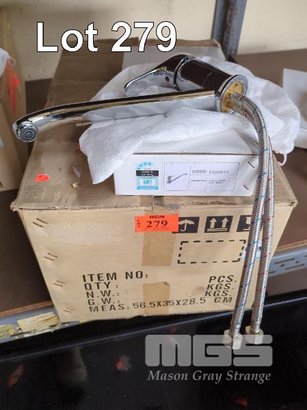 12 X CHROME SINGLE LEVER SINK MIXER TAPS, STRAIGHT SPOUT. NEW IN BOX.