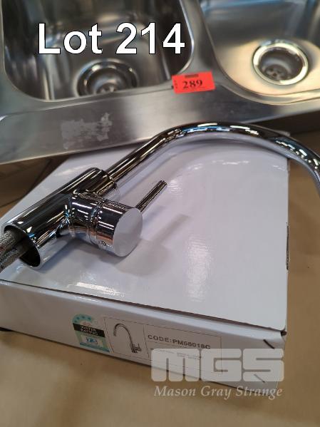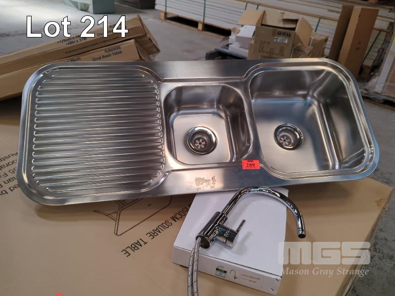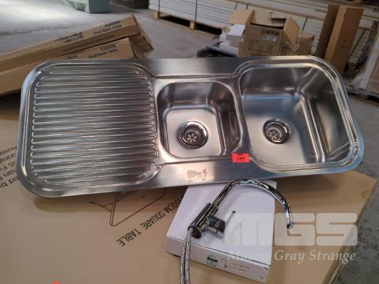 SINK & MIXER COMBO. DOUBLE BASIN STAINLESS STEEL SINK AND CHROME SINGLE LEVER SINK MIXER TAP, CURVED SPOUT. ALL NEW.