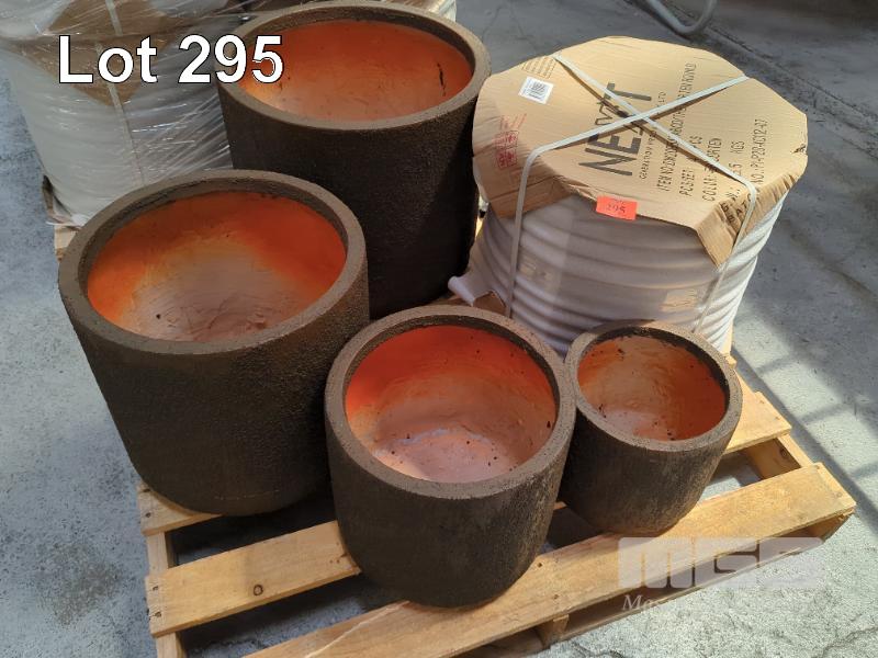 2 X SETS OF 4 CONTEMPORARY PLANTER POTS (NEW). COLOUR CORTEN. NESTED PACKED. 1 @ 50 CM DIAMETER X 47 CM HEIGHT. 1 @ 42 CM DIAMETER X 40 CM HEIGHT. 1 @ 34 CM DIAMETER X 32 CM HEIGHT. 1 @ 27 CM DIAMETER X 25 CM HEIGHT.