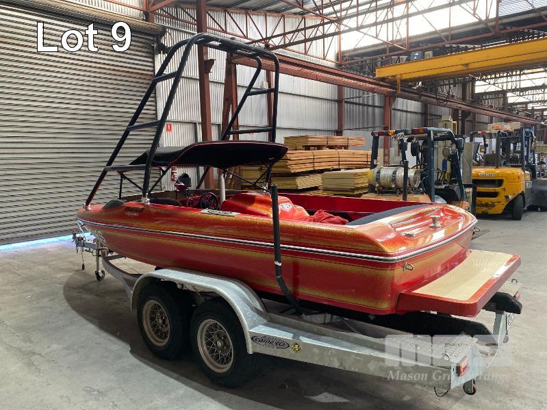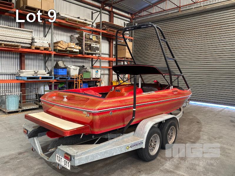 1987 CAMERO SKI BOAT, MONZA 5.35m MARINE REG: RQ16S HIN: AU-TSA003008CU2 350 CHEV HOURS: 690 SHOWING SOFT CLUTCH, WAKE TOWER REAR BOARDING PLATFORM BIMINI CANOPY SWING OUT SKI BAR 5 PERSON CAPACITY ON TWIN AXLE BOAT TRAILER, GALV STEEL REG: TDT 011 (SA) BALL HITCH, BRAKES, HAND WINCH ALLOY WHEELS, 14" JOCKEY WHEEL