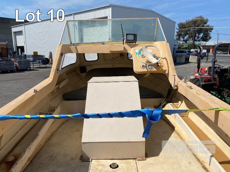 1976 DEALTRY HALF CABIN FIBREGLASS BOAT 5.49m IN BOARD CHRYSLER 6 CYLINDER PETROL ENGINE HIN: AUTSA035039BZ1 MARINE REG: TY13S ON 1977 SINGLE AXLE BOAT TRAILER, REG: TKV 224 (SA) BRAKES, BALL HITCH, HAND WINCH, ALLOY WHEELS WITH REG PAPERS