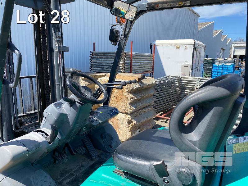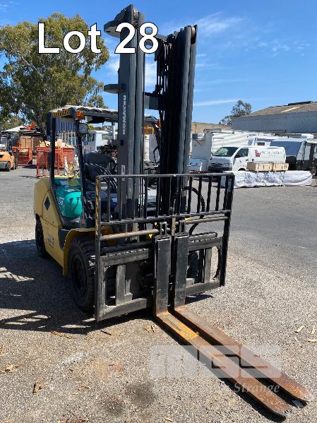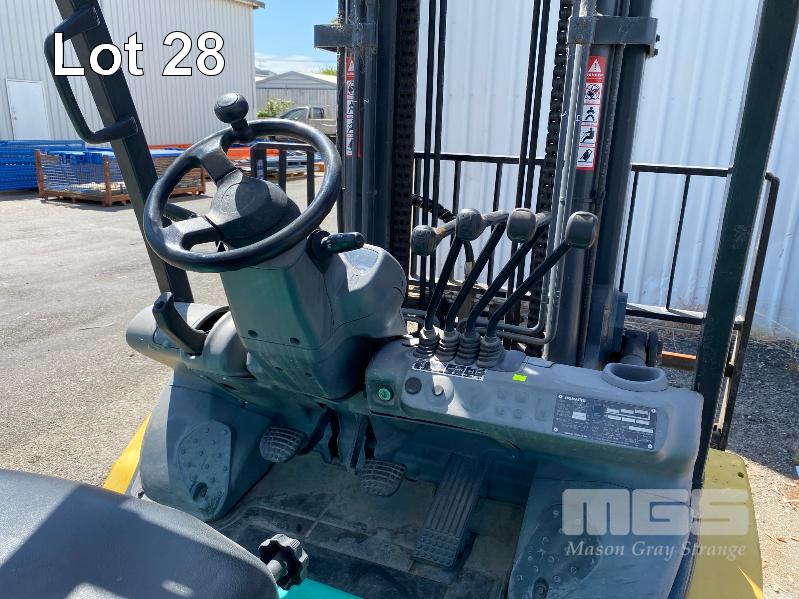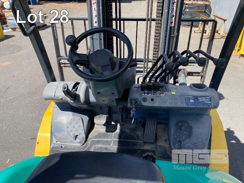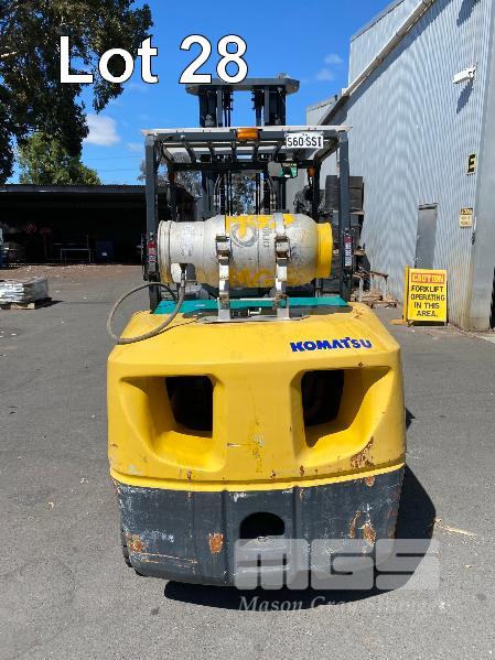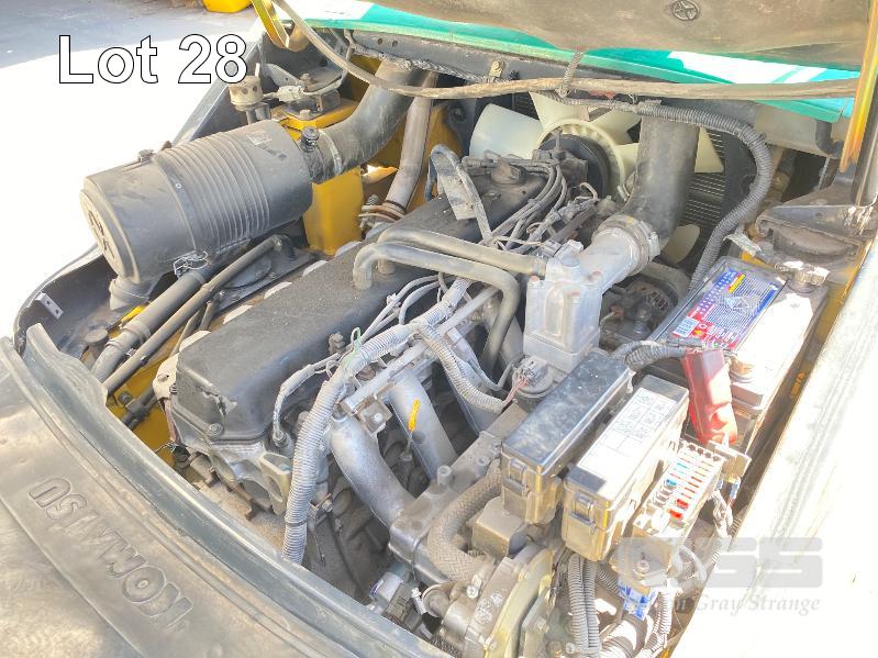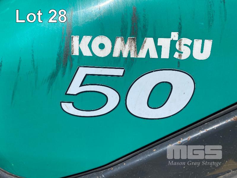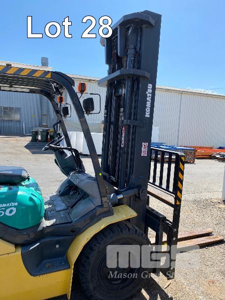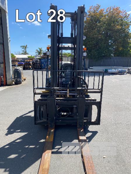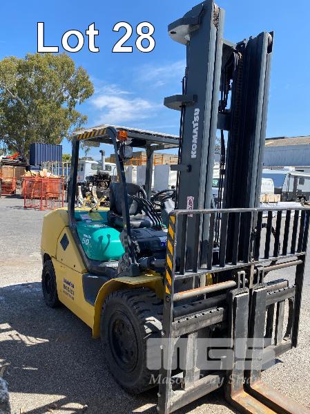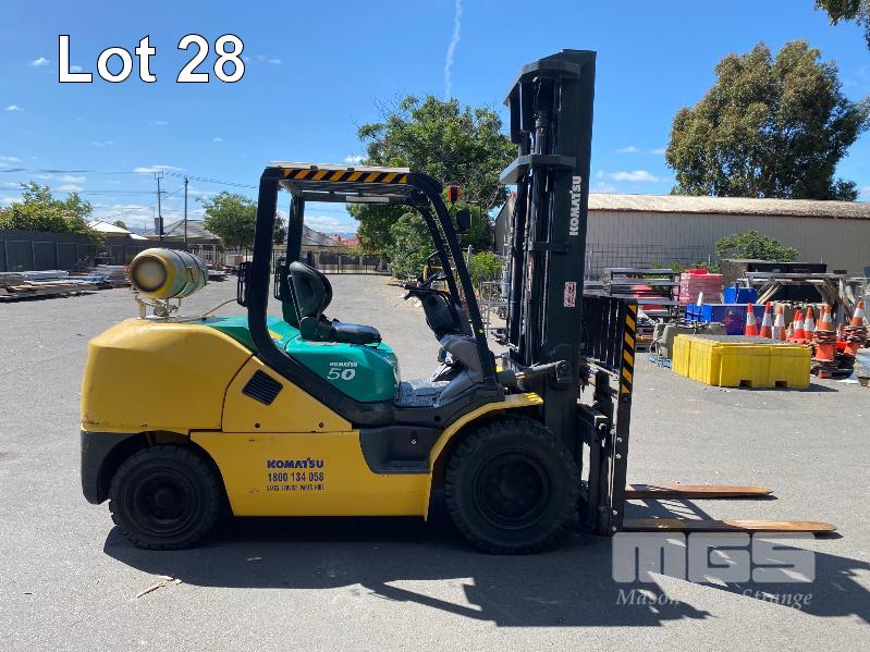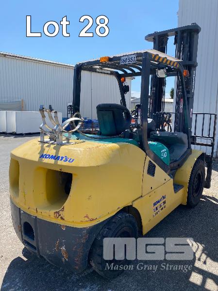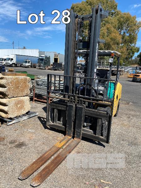 2009 KOMATSU FORKLIFT 4.2T CAP. MOD: FG50AT-10 S/NO: 134096 REGO NO: S60SSI 6 CYLINDER NISSAN PETROL/LPG ENGINE HOURS: 3138 SHOWING MAX LIFT HEIGHT: 4,500mm MAX LIFT WEIGHT 4200kg 2 STAGE MAST WITH SIDESHIFT & TYNE SHIFT SOILD TYRES, RUNS WELL NEW STARTER MOTOR FITTED KEY #52
