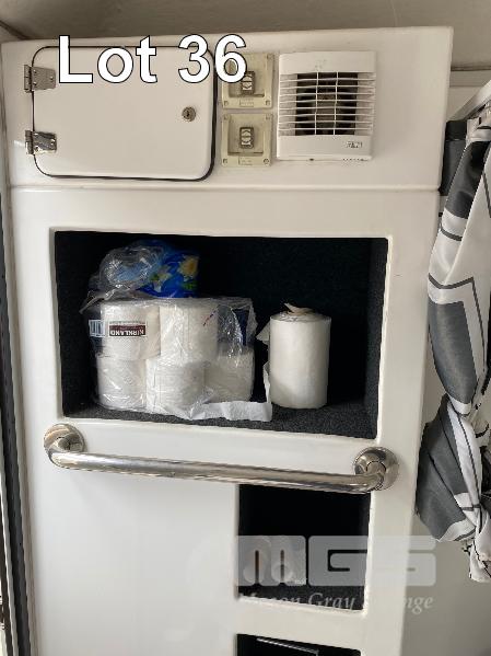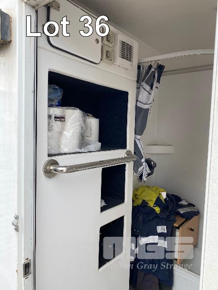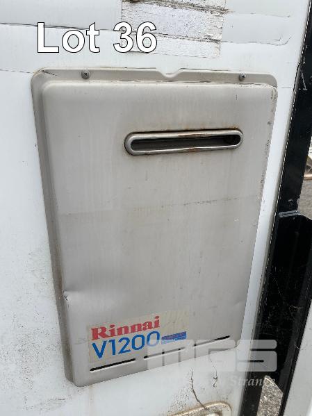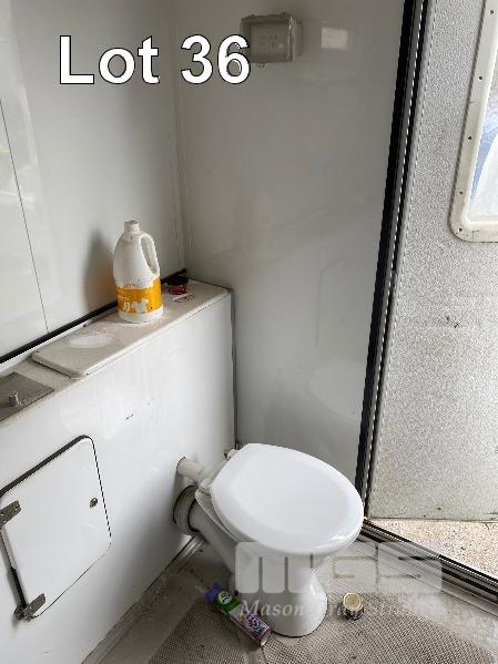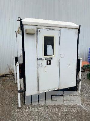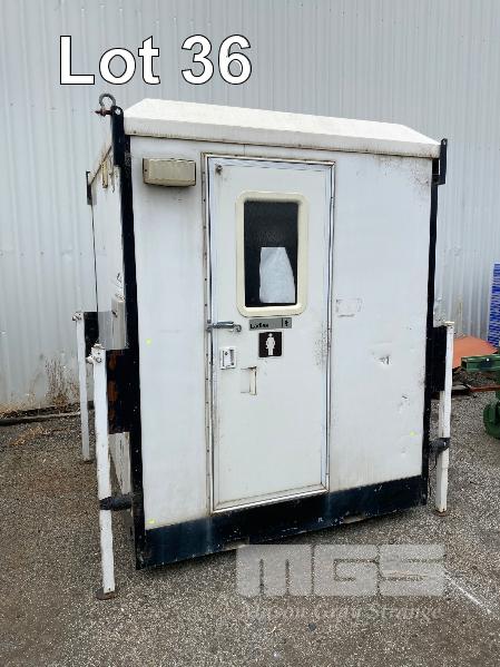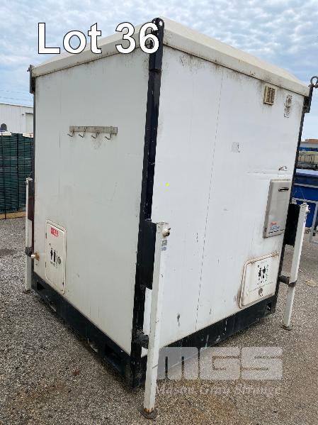 TRANSPORTABLE ENSUITE MANUFACTURED BY ENSUITES ON SITE 1800 x 1800 x 2400mm (H) INSULATED ALUMINIUM & FIBREGLASS CONSTRUCTION FITTED WITH SINGLE TOILET, SHOWER, WASH BASIN & STORAGE CABINET, 240V WATER PRESSURE PUMP, LPG GAS HOT WATER HEATER, RINNAI V1200, WITH BUILT IN LPG BOTTLE STORAGE ENCLOSURE, 240v INLET POWER PLUG, LIGHTING & GPO OUTLET. STEEL SKID BASE WITH FORKLIFT POCKETS, OVERHEAD LIFTING POINTS & 4 x HEIGHT ADJSUTABLE OUTRIGGER LEGS