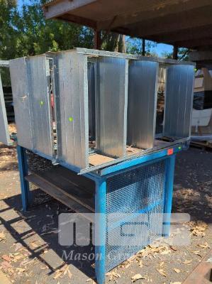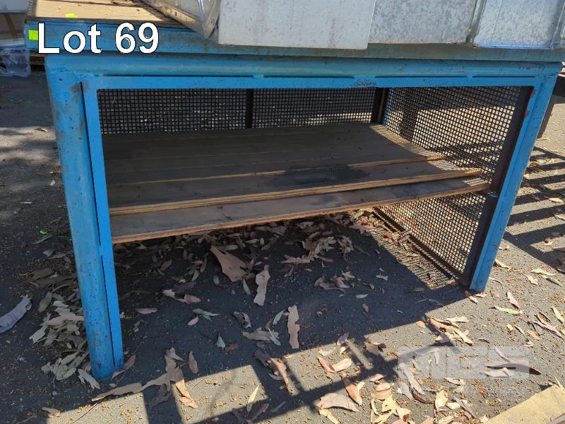 WORK BENCH, TIMBER TOP, 2 TIER, 1580 (L) x 960 (W) x 950 mm (L) WITH 4 x METAL SHELF UNITS, 5 TIER, 1300 (H) x 700 (W) x 300mm (D)