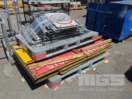 ROAD WORK SIGNS & STANDS, INCLUDING SPEED LIMIT, PREPARE TO STOP, ETC