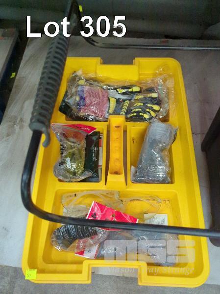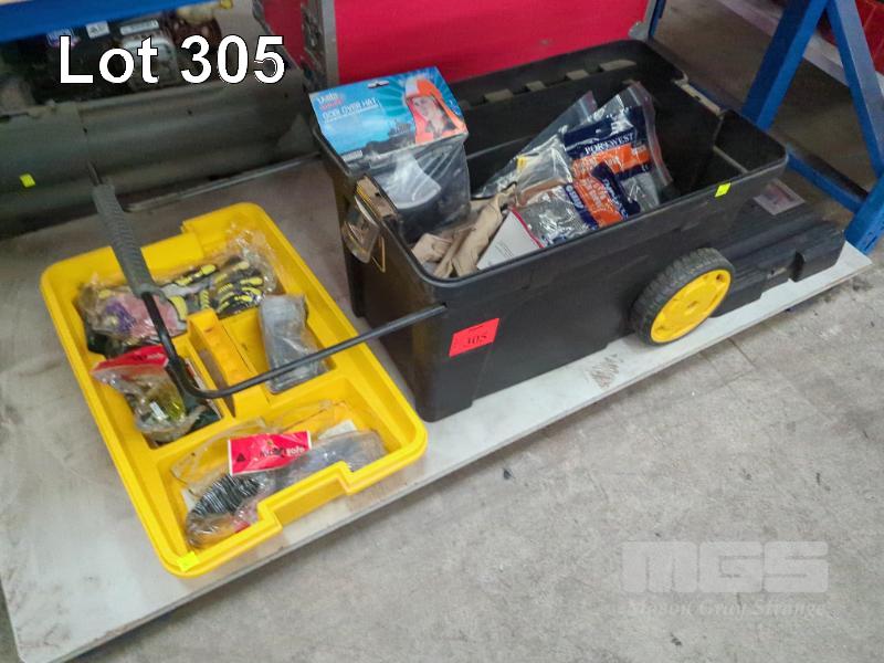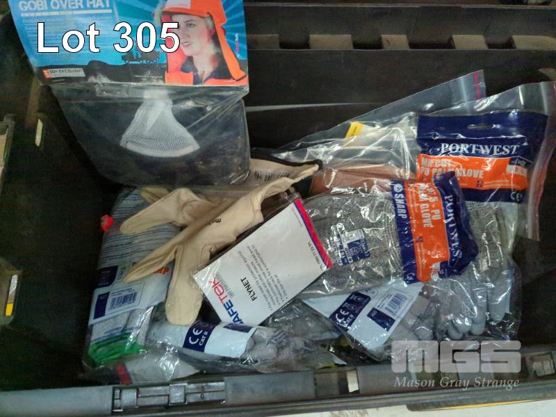PPE INCLUDING GLOVES, RIGGERS, ARMOURED & CUT PROTECTION, SAFETY GLASSES, FLY NETS & OVER HAT SHADES, IN MOBILE TUB