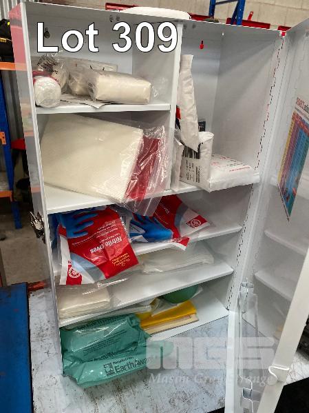 FIRST AID BOX & CONTENTS, WHITE STEEL,