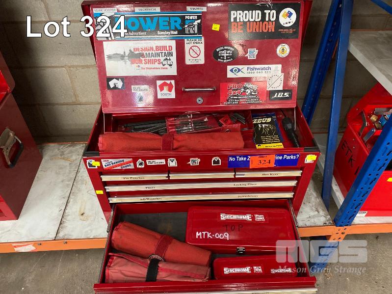 JBS 6 DRAWER TOOLBOX INCLUDING PUNCH SET, SIDCHROME SPANNER SETS, SIDCHROME SOCKET SETS, HAMMER, HEX KEYS, ETC