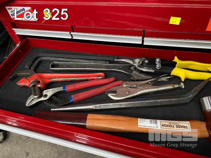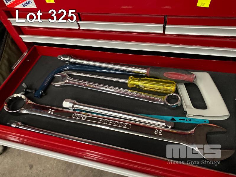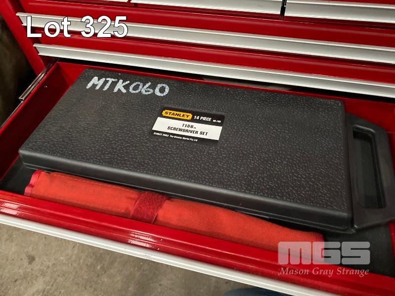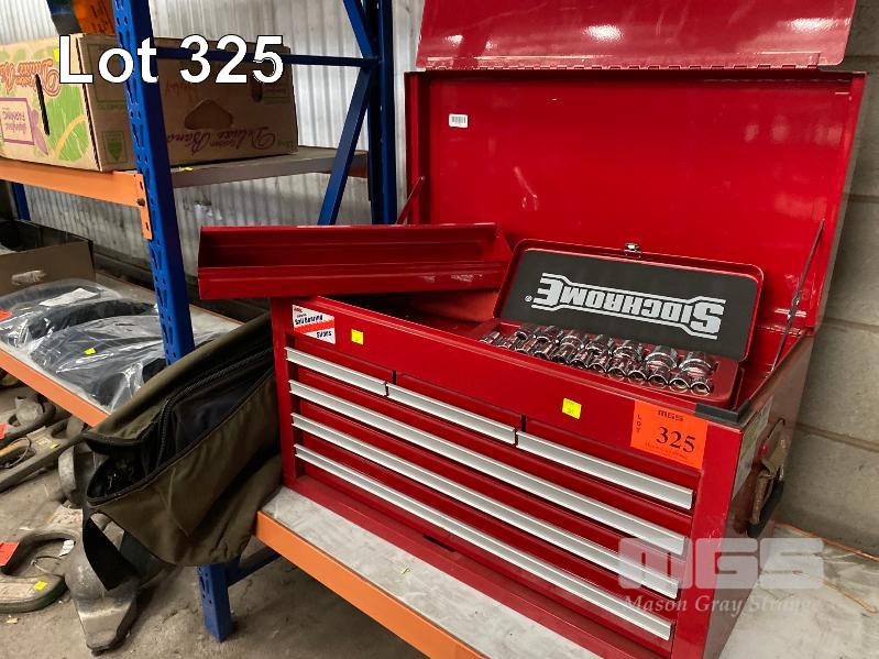JBS 6 DRAWER TOOLBOX INCLUDING SIDCHROME SPANNER SET, SIDCHROME SOCKET SET, STANLEY 14 PIECE SCREWDRIVER SET, HAMMER, SHIFTER, HEX KEY SET, ETC
