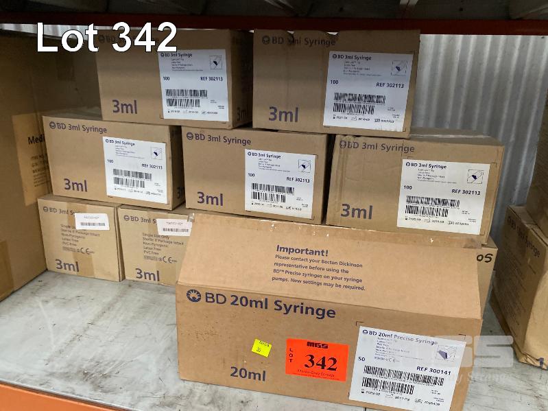 14 x BOXES PLASTIC SYRINGES INC 3ml, 10ml, 20ml & 50ml & 1 x BOX (200/BOX) MEDICAL FACE SHIELDS