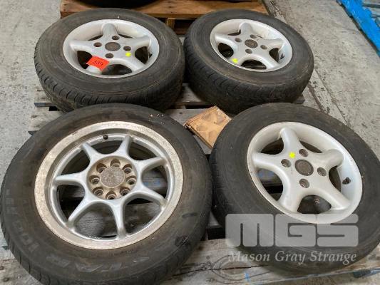 4 x ASSORTED ALLOY WHEELS & TYRES, 15"