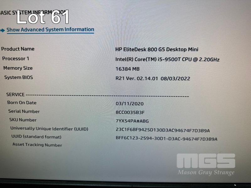 DESKTOP PC, HP ELITEDESK 800 G5 MINI, CORE i5 9500T (9TH GEN) @ 2.2GHz, 16GB DDR4 RAM, 256GB NVMe M.2 SSD, INTEL UHD GRAPHICS 630, Wi-Fi, BLUETOOTH, WINDOWS 11 PRO INSTALLED & POWER SUPPLY (NO KEYBOARD, NO MOUSE) S/N:8CC0035B3F