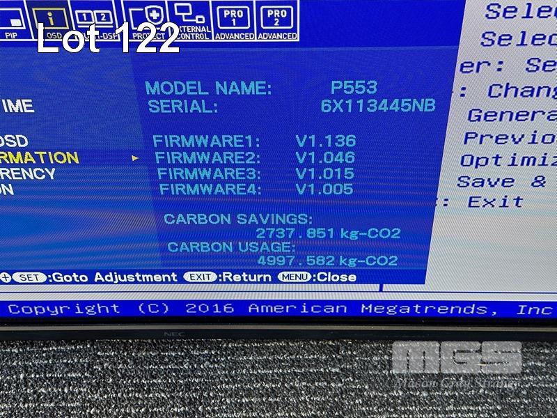 MONITOR, NEC MULTISYNC P553 55" COMMERCIAL LCD DISPLAY WITH BUILT-IN PC MODULE, CORE i5 6440EQ @ 2.7GHz, 4GB RAM, 128GB SSD (NO REMOTE, NO STAND) S/N:6X113445NB