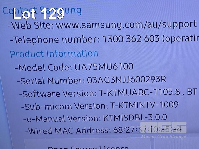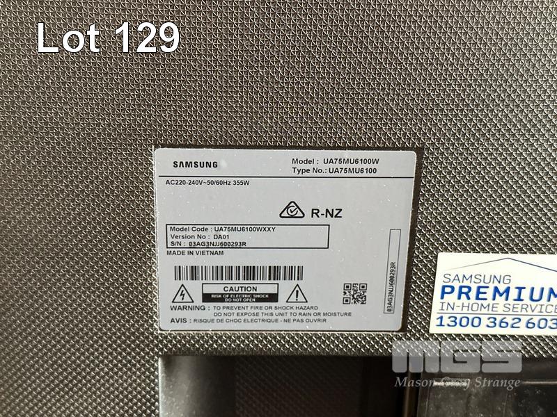 SAMSUNG SERIES 6 75" 4K SMART TV, MODEL UA75MU6100W WITH REMOTE (NO STAND) S/N:03AG3NJJ600293R