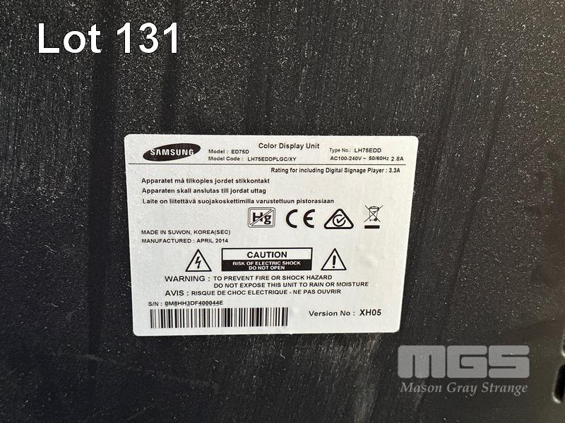 MONITOR, SAMSUNG ED75D 75" COMMERCIAL LCD DISPLAY WITH TOUCH OVERLAY, REMOTE (NO STAND) (NOTE: SMALL SCRATCHES ON SCREEN) S/N:0M8HH3DF400044E