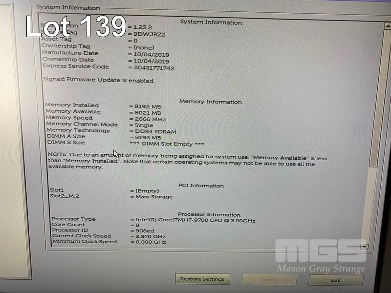ALL-IN-ONE PC, DELL OPTIPLEX 7470, CORE i7 9700 (9TH GEN) @ 3GHz, 8GB DDR4 RAM, 512GB NVMe M.2 SSD, INBUILT 23.8" FHD WIDESCREEN (1920x1080), INTEL HD GRAPHICS, WEBCAM, 5 x USB, 1 x USB-C, WINDOWS 11 HOME INSTALLED, KEYBOARD & MOUSE S/N:9DWJRZ2