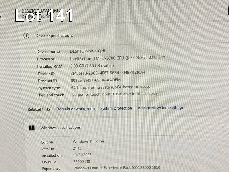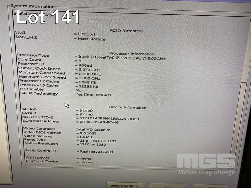 ALL-IN-ONE PC, DELL OPTIPLEX 7470, CORE i7 9700 (9TH GEN) @ 3GHz, 8GB DDR4 RAM, 512GB NVMe M.2 SSD, INBUILT 23.8" FHD WIDESCREEN (1920x1080), INTEL HD GRAPHICS, WEBCAM, 5 x USB, 1 x USB-C, WINDOWS 11 HOME INSTALLED, KEYBOARD & MOUSE S/N:9DRJRZ2