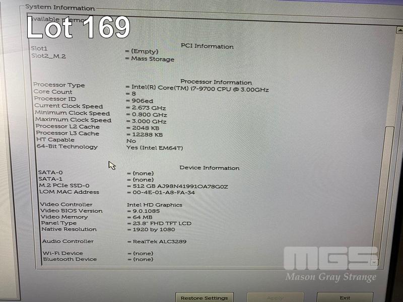 ALL-IN-ONE PC, DELL OPTIPLEX 7470, CORE i7 9700 (9TH GEN) @ 3GHz, 8GB DDR4 RAM, 512GB NVMe M.2 SSD, INBUILT 23.8" FHD WIDESCREEN (1920x1080), INTEL HD GRAPHICS, WEBCAM, 5 x USB, 1 x USB-C, WINDOWS 11 HOME INSTALLED, KEYBOARD & MOUSE S/N:9DVLRZ2