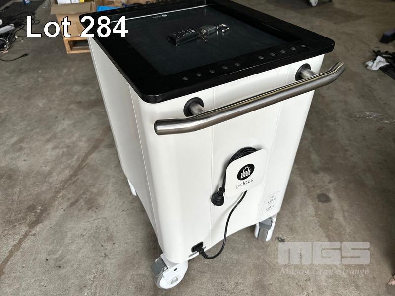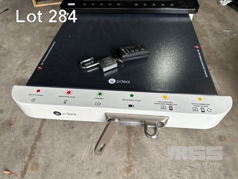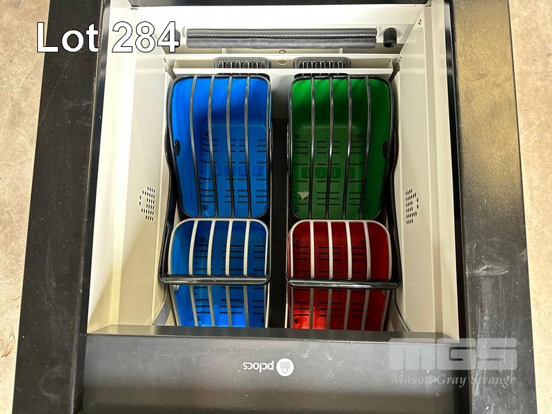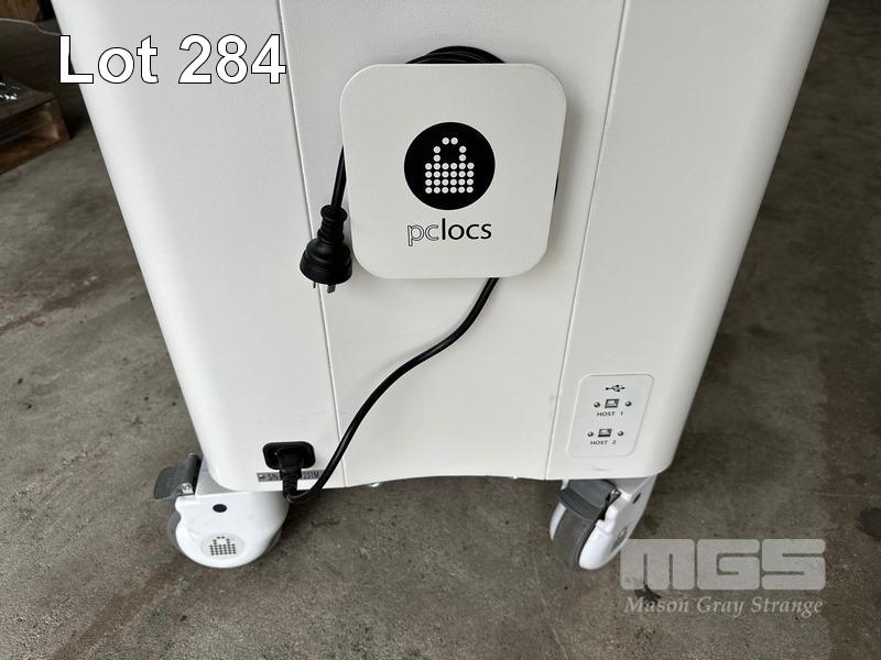 PC LOCS iQ 20 CART CHARGE & SYNC STATION TROLLEY, LOCKABLE, 4 x 5-SLOT BASKETS, 10 x USB CHARGING PORTS, 72 x 52 x 82cm S/N:1231M