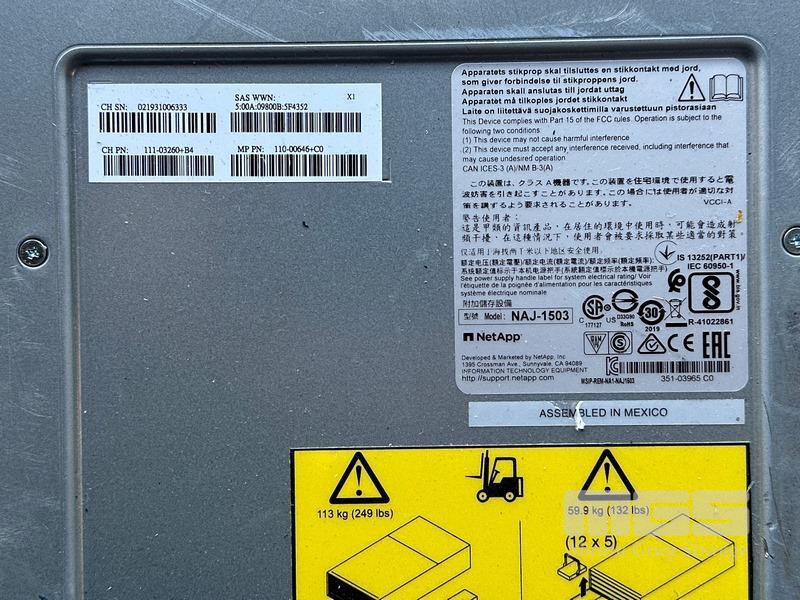 RACKMOUNT STORAGE ARRAY, NETAPP DS460C (NAJ-1503), 4U, 11 x 12TB SAS (12Gbps) HDD (X4132A), 2 x CONTROLLERS (111-02850+C4), 2 x PSU (NO 15A CABLES) S/N:721950500201