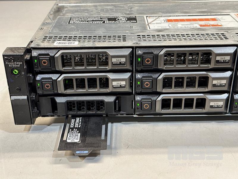 RACKMOUNT SERVER, DELL POWEREDGE R730xd, 2U, 2 x XEON E5-2630 v3 @ 2.4GHz, 32GB ECC DDR4 RAM, 3 x 4TB SAS HDD, 1 x 2TB SAS HDD, 3 x 1TB SAS HDD, 2 x 600GB SAS HDD, 2 x 300GB SAS HDD, 2 x 1100W PSU (NO CABLES) S/N:9D62H82