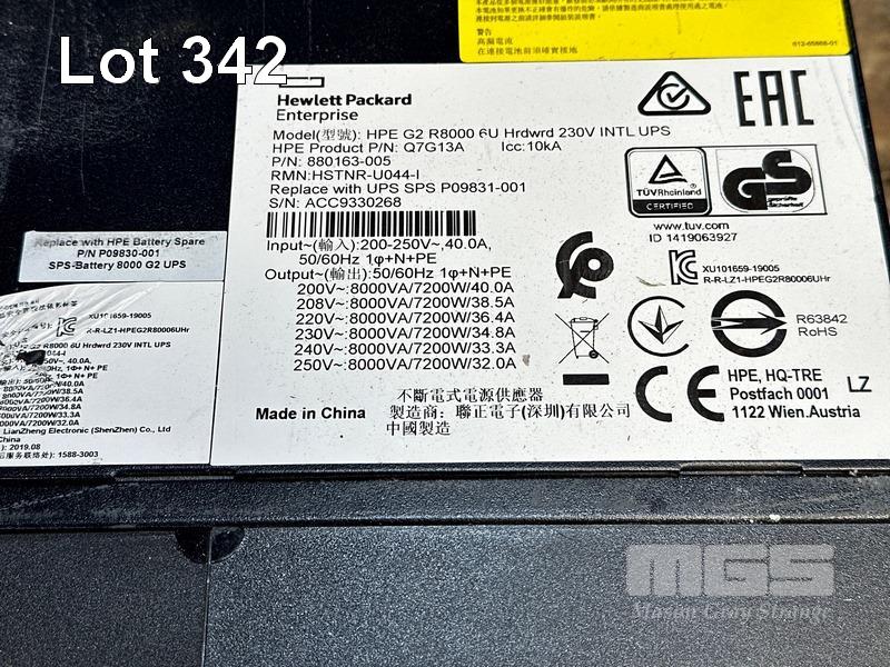 RACKMOUNT UPS, HPE R8000 G2, 8kVA, 7.2kW, 6U, MODEL Q7G13A, 32A CONNECTION WITH 2 x HPE PDU, P9Q45A S/N:ACC9330268