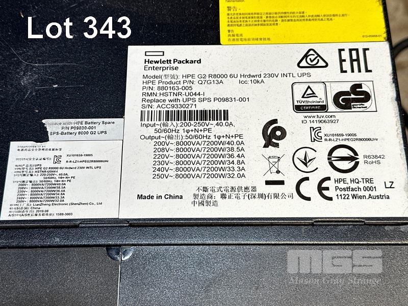 RACKMOUNT UPS, HPE R8000 G2, 8kVA, 7.2kW, 6U, MODEL Q7G13A, 32A CONNECTION WITH 2 x HPE PDU, P9Q45A S/N:ACC9330271