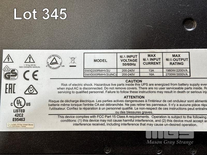RACKMOUNT UPS, APC SMART-UPS X 3000, 3kVA, 2.7kW, 2U, MODEL SMX3000RMHV2UNC, AP9631 NETWORK MANAGEMENT CARD (NO 15A CABLE) S/N:AS2005153062