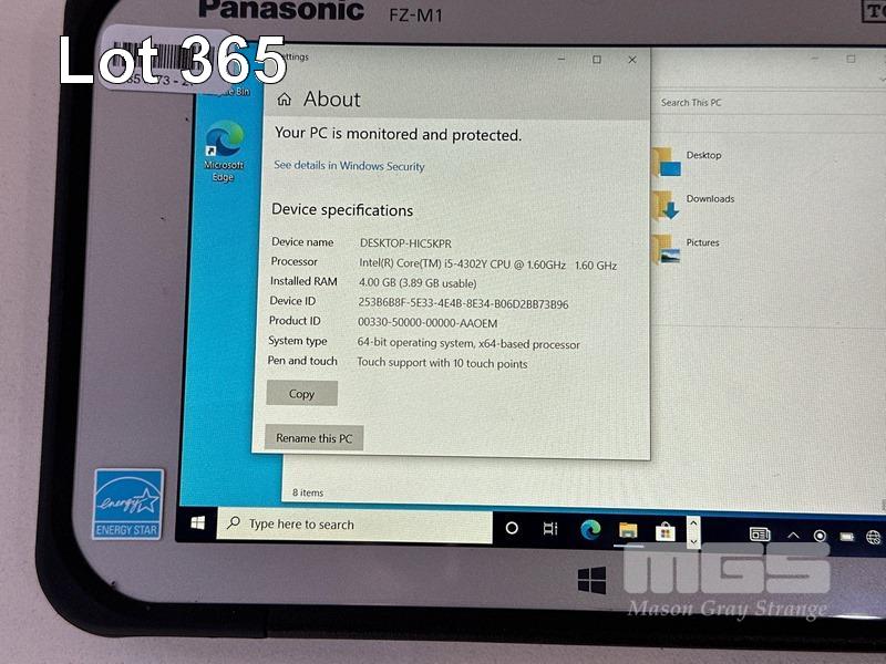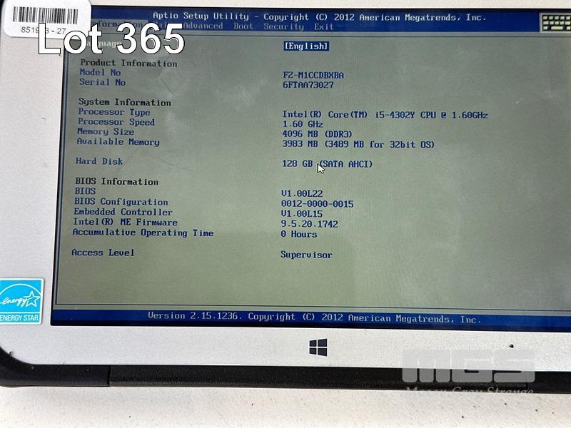 TABLET PC, PANASONIC TOUGHPAD FZ-M1, CORE i5 4302Y (4TH GEN) @ 1.6GHz, 4GB DDR3 RAM, 128GB SSD, 7" TOUCHSCREEN (1280x800), Wi-Fi, BLUETOOTH, WINDOWS 10 PRO INSTALLED & POWER SUPPLY S/N:6FTAA73027
