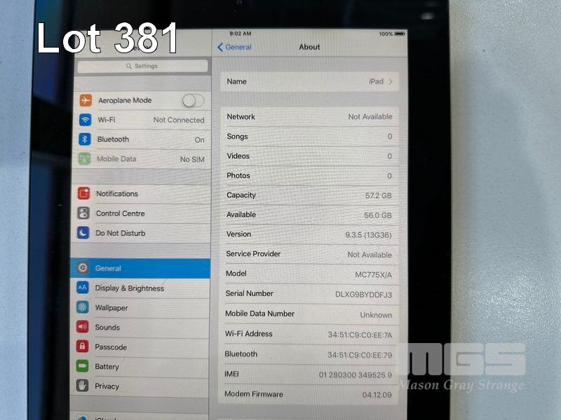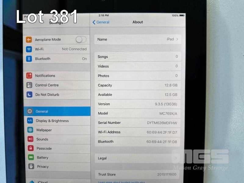 10 x APPLE iPADS (MOST iCLOUD LOCKED) & 2 x APPLE iPHONES APPLE iPAD 2, 16GB, A1395 APPLE iPAD 2, 32GB, A1395 APPLE iPAD 2, 32GB, A1395 (iCLOUD LOCKED) APPLE iPAD 3RD GEN, 64GB, A1416 (iCLOUD LOCKED) APPLE iPAD 2, 64GB, A1396 (iCLOUD LOCKED) APPLE iPAD 2, 16GB, A1395 (iCLOUD LOCKED) APPLE iPAD 3RD GEN, 32GB, A1430 (iCLOUD LOCKED) APPLE iPAD 3RD GEN, 64GB, A1430 (iCLOUD LOCKED) APPLE iPAD 2, 64GB, A1396 APPLE iPAD 2, 32GB, A1396 (iCLOUD LOCKED) 2 x APPLE iPHONE 4, 16GB A1332 (NO CABLES, NO CHARGERS) S/N:DYTM626MDFHW, DQTG80WNDFJ2, DLXGN7Q5DFJ2, DYTHG70SDJ8V, DLXG1QE3DKNY, DYTM61PHDFHW, DYTHXLNKDVGH, DYTJ12JXDVGJ, DLXG9BYDDFJ3, DKVKK0FMDFJ2, 7R0405TDA4S, 86037WRAA4S