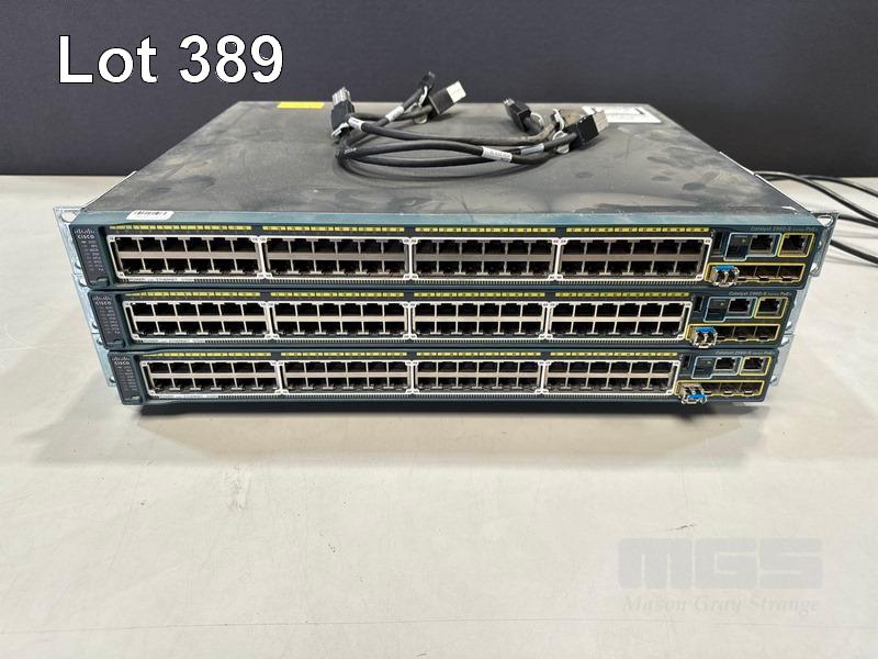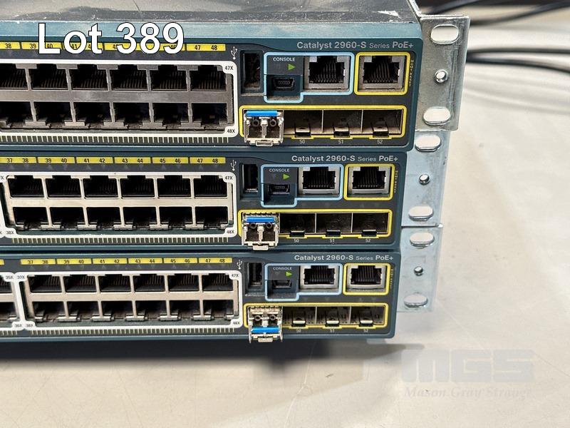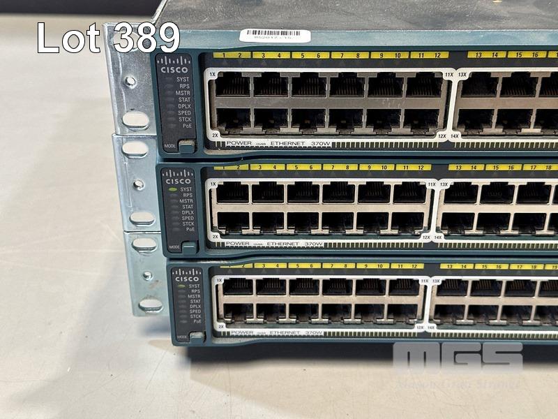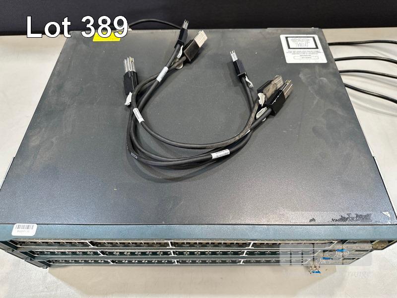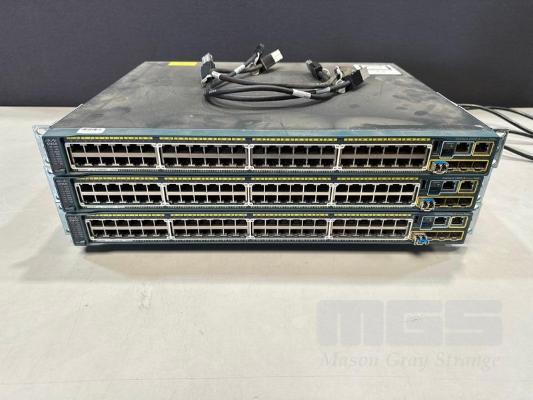 3 x CISCO CATALYST 2960-S SERIES PoE+ 48-PORT SWITCHES, WS-C2960S-48LPS-L V03 WITH C2960S-STACK MODULES & STACKING CABLES S/N:FOC1714Y0W4, FOC1714Y0TP, FOC1847W0UM