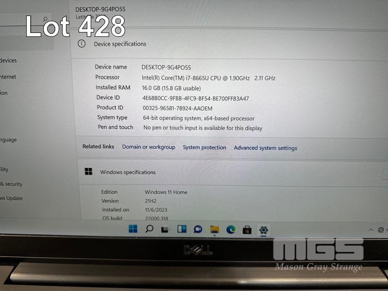 LAPTOP, DELL LATITUDE 7300, CORE i7 8665U (8TH GEN) @ 1.9GHz, 16GB DDR4 RAM, 512GB NVMe M.2 SSD, 13.3" WIDESCREEN (1920x1080), INTEL UHD GRAPHICS 620, Wi-Fi, BLUETOOTH, WINDOWS 11 HOME INSTALLED & POWER SUPPLY (NOTE: MINOR CASING PEELING, MISSING RUBBER STRIPS ON BOTTOM OF CASE) S/N:3VC57Y2