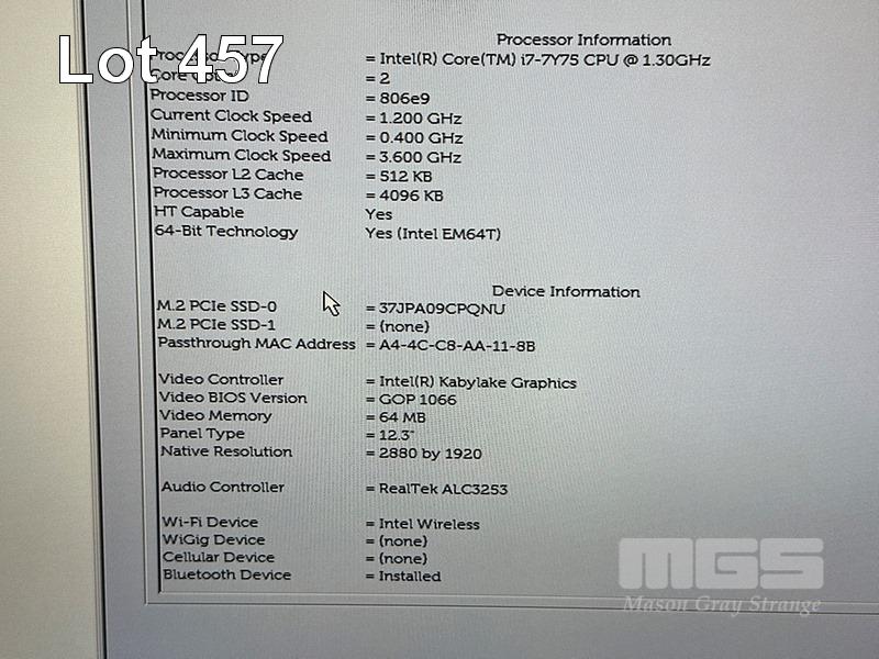 TABLET PC, DELL LATITUDE 7285, CORE i7 7Y75 (7TH GEN) @ 1.3GHz, 16GB DDR3 RAM, 512GB NVMe M.2 SSD, 12.3" TOUCHSCREEN (2880x1920), INTEL HD GRAPHICS 615, Wi-Fi, BLUETOOTH, WINDOWS 10 PRO INSTALLED, KEYBOARD, STYLUS & USB-C POWER SUPPLY S/N:8DNW6H2