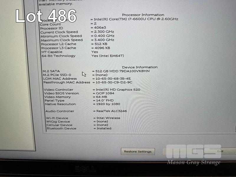 LAPTOP, DELL LATITUDE 7480, CORE i7 6600U (6TH GEN) @ 2.6GHz, 16GB DDR4 RAM, 512GB M.2 SSD, 14" WIDESCREEN (1920x1080), INTEL HD GRAPHICS 520, Wi-Fi, BLUETOOTH, WINDOWS 10 HOME INSTALLED & POWER SUPPLY S/N:3DV1PH2