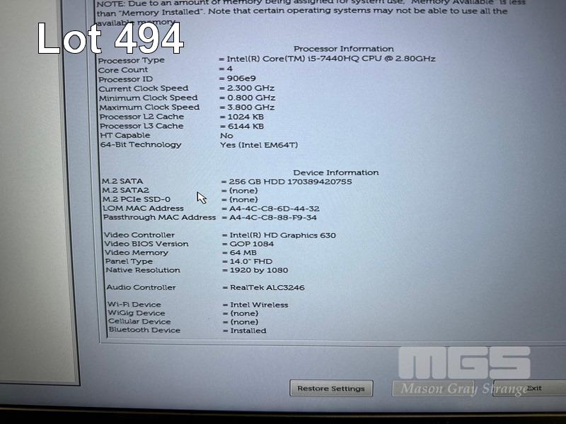 LAPTOP, DELL LATITUDE 5480, CORE i5 7440HQ (7TH GEN) @ 2.8GHz, 16GB DDR4 RAM, 256GB M.2 SSD, 14" WIDESCREEN (1920x1080), INTEL HD GRAPHICS 630, Wi-Fi, BLUETOOTH, WINDOWS 10 HOME INSTALLED & POWER SUPPLY S/N:GM5VPH2