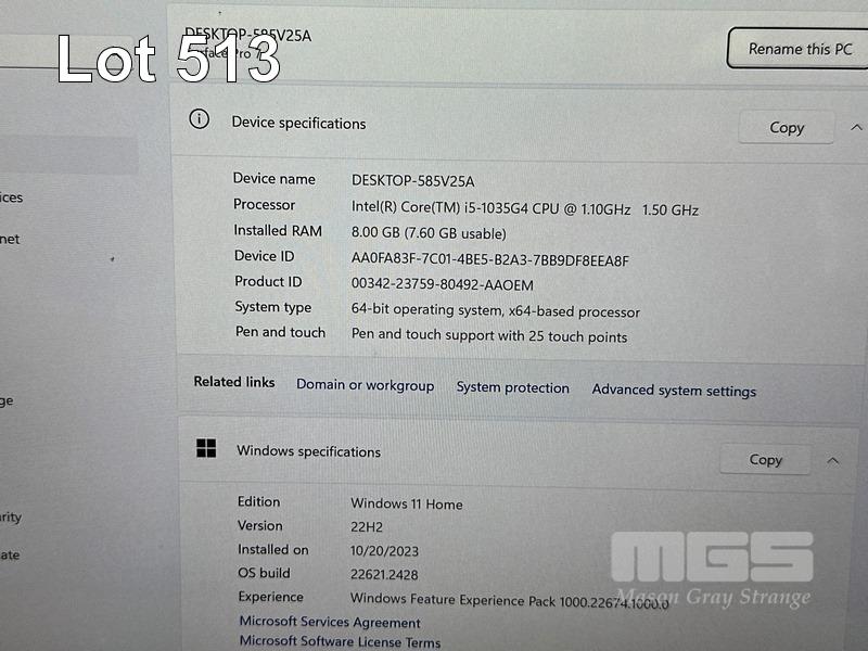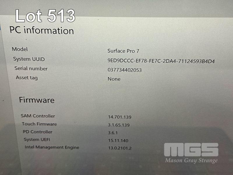 TABLET PC, MICROSOFT SURFACE PRO 7, MODEL 1866, CORE i5 1035G4 (10TH GEN) @ 1.1GHz, 8GB RAM, 128GB SSD, 12.3" TOUCHSCREEN (2736x1824), INTEL IRIS PLUS GRAPHICS, Wi-Fi, BLUETOOTH, WINDOWS 11 HOME INSTALLED, KEYBOARD TYPE COVER & POWER SUPPLY (NOTE: TOUCHSCREEN FAULTY, USB PORT FAULTY) S/N:037734402053