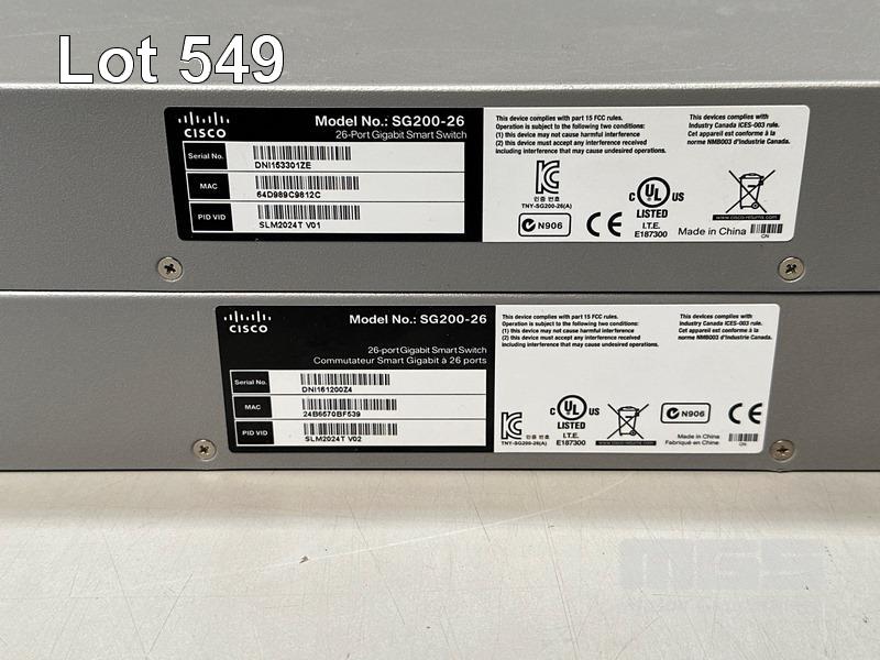 2 x CISCO SG200-26 26-PORT GIGABIT SMART SWITCHES S/N:DNI153301ZE, DNI161200Z4