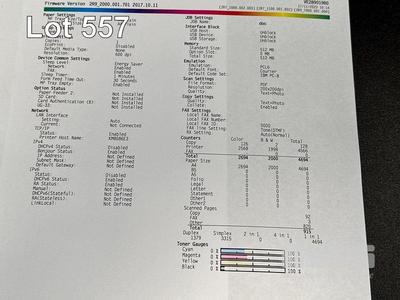 PRINTER, KYOCERA ECOSYS M5521cdw COLOUR LASER MFC, 2,694 COLOUR & 2,000 B&W PAGES (TEST PAGE ATTACHED)